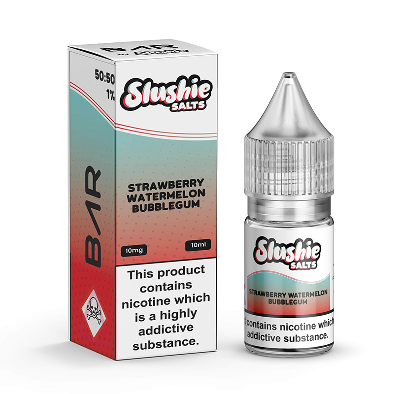Slushie – Bar Salts are available in pocket-friendly, 10ml TPD-compliant bottles in either 10mg or 20mg of nicotine salts. These e-liquids feature a 50% VG ratio, ideal for use with pod devices or starter kits with a focus on clear flavour. Slushie has adapted its e-liquid range to nicotine salts for more concentration on taste, as well as a smooth throat hit.
