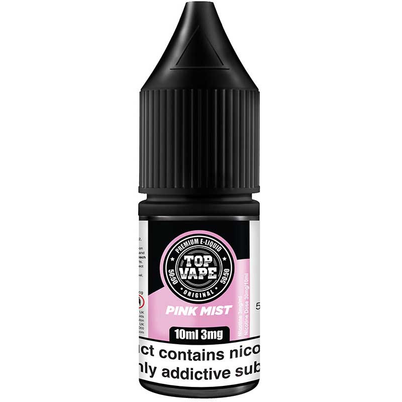 Top Vape – 50/50 – Pink Mist – Fresh strawberries with sugary candy notes.